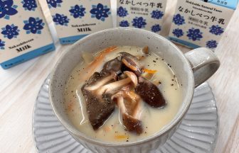3、粉が玉ねぎになじんでしっとりしたら牛乳を少しずつ加えながら混ぜ、えびを入れてとろみがつくまで煮る。マカロニ、コンソメ、塩を加えて混ぜる。